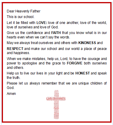 "The school's values of love, honesty, faith, forgiveness, respect and kindness are instilled in pupils so that they support one another and work together very well, creating a calm effective learning environment. The school aims to help pupils 'feel their worth' as unique children of God and the curriculum is organised to this end." (SIAMS 2018)