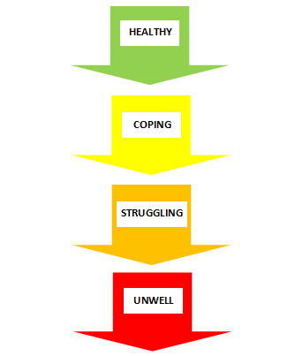 Like physical health, mental health is something we all have. It can range across a spectrum from healthy to unwell; it can fluctuate on a daily basis and change over time, see spectrum below.