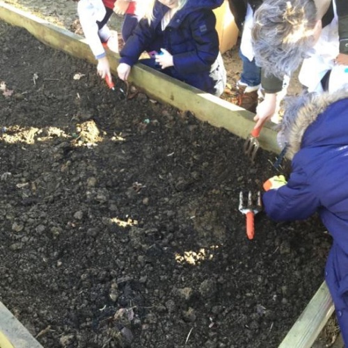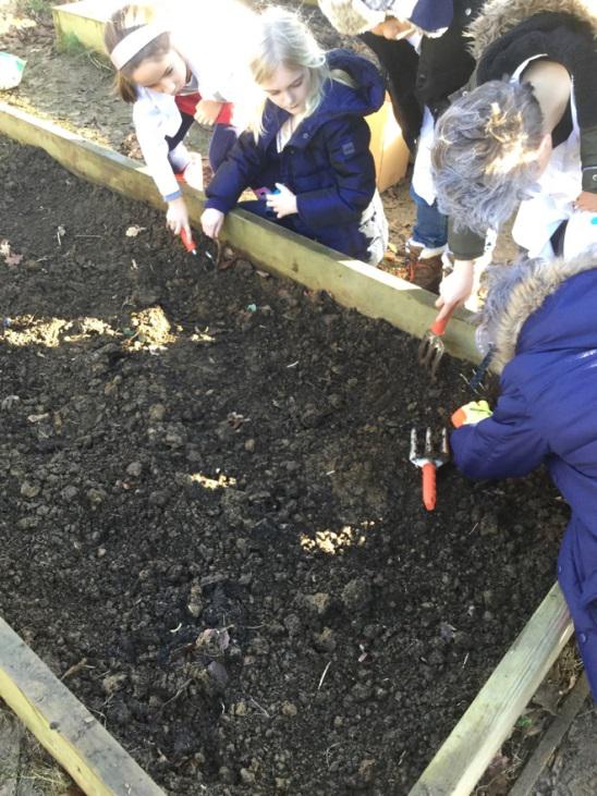 In preparation for when year 3 plant their seeds and eventually transfer them outside, we all got our hands dirty and prepared our gardening bed! We carefully weeded the soil that was already there, topped it up with some quality top soil and then scattered some fresh compost straight from a local farm! The children were horrified to find out they were actually spreading cow manure! The gardening bed is now ready for when we transfer our seedlings outside in the late spring.