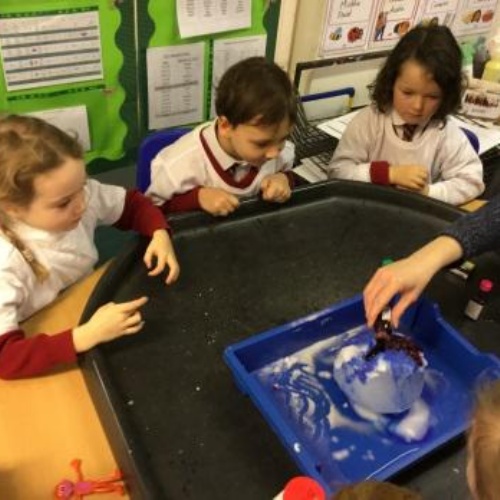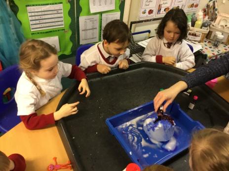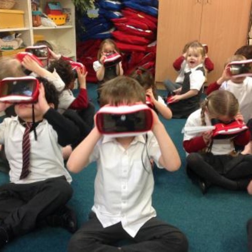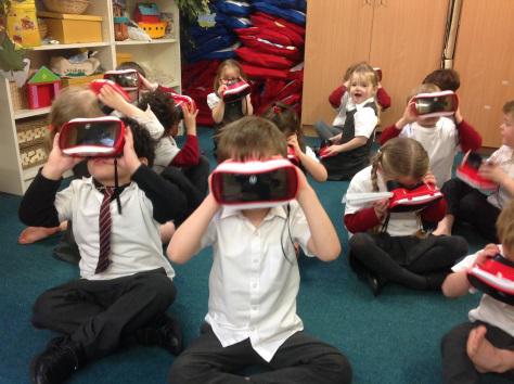 Reception were lucky enough to be the first year group to use the virtual reality head sets this week! They were immersed in an underwater world to explore the sea, as well as looking outside our world into space! They were also busy exploring solids and liquids by seeing what happens to ice balloons when we put different materials on them. It looks very messy, exciting and a bit chilly!