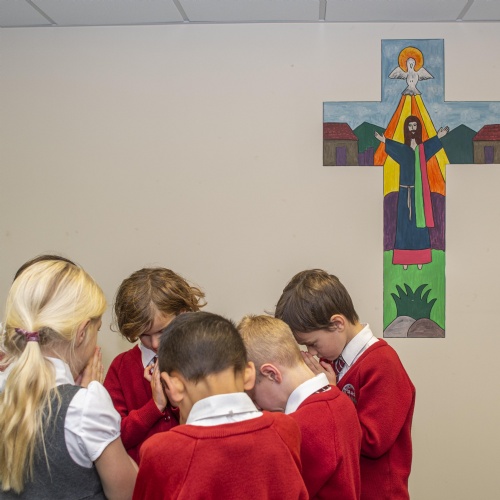 As a church school, R.E. is considered a core subject, with allocated weekly time and regular liaison with the local parish church. We teach the ‘Understanding Christianity’ syllabus, supplemented with World Faith units, following Diocese recommendations. This syllabus enables us to deliver high quality R.E. education that teaches the children to reflect deeply about faith and philosophical issues and gives them the theological knowledge and religious vocabulary to be able to express their own considered and comparative viewpoints. R.E. prepares the children to be empathetic and reflective, well-informed citizens of the future, giving them the cultural capital necessary to become effective leaders in the multi-faith, global society of tomorrow.