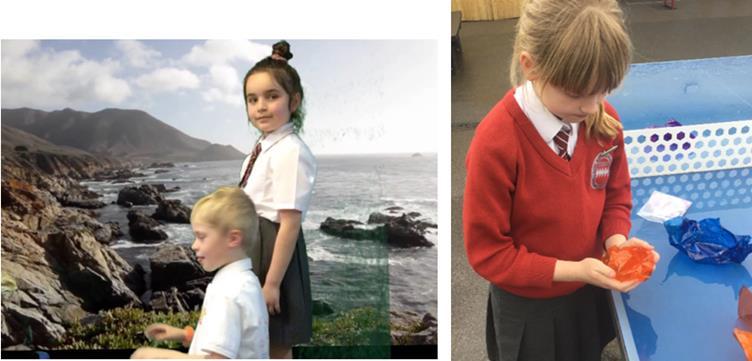 Today, Year 3 revisited their science and literacy learning about Mary Anning from Term 2 earlier this year! In groups, the children created a drama performance of a key event in the famous scientist’s life. Not only that, but then the children learnt all about how a green screen is used to create films and how the technology works. The children were able to see and use the green screen technology and equipment to superimpose themselves into a variety of different scenes to make their drama more realistic. It was fascinating to see how the programmed camera was able to pick out the green colours and immediately replace them with an image. The children were very inventive and were able to come up with different ways to incorporate props onto the film without their stand being seen (by using the green classroom bin!) The children particularly enjoyed watching their finished film at the end of the day!