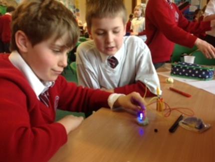 In the afternoon, Year 5 also experimented with dough to see if it could be an electrical conductor. Two different types of dough were made - one with salt and one with sugar - and they were incorporated into circuits with LED bulbs. They found out that salt dough does indeed conduct electricity but sugar dough acts as an insulator.