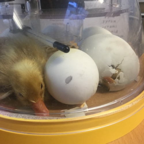 When we thought that they day couldn’t get any better, just before home time our first duckling hatched (and was, appropriately, named Hatcher!) The children were able to see the hatching process and how the duckling looked when it was first born. We talked about what the duckling had just had to do, and the children saw just how exhausted it was! We were all delighted to see that it was happy and healthy! Hatcher will stay in the incubator overnight to keep warm and we’re hoping that he’s joined by one of the others tomorrow, ready to be moved into the pen.